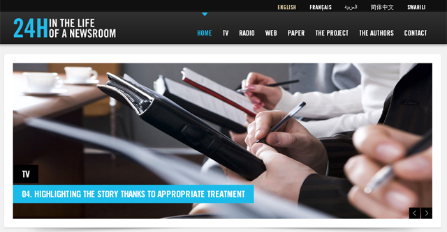 ¿Qué es un medio? ¿Cómo funciona? ¿Cómo producir información? ¿Cómo hacer un programa de radio, uno de televisión, periódico o un sitio web? 24 horas en la vida de una redacción es un proyecto conjunto de la Escuela de Graduados de Periodismo de Lille y Canal France International, que ofrece acceso gratuito a 4 colecciones de fichas prácticas (96 fichas en total), libres, visibles y descargables en 5 idiomas (inglés, francés, árabe, chino y swahili) para entender y aprender periodismo en los 4 medios de comunicación principales: televisión, radio, internet y prensa.